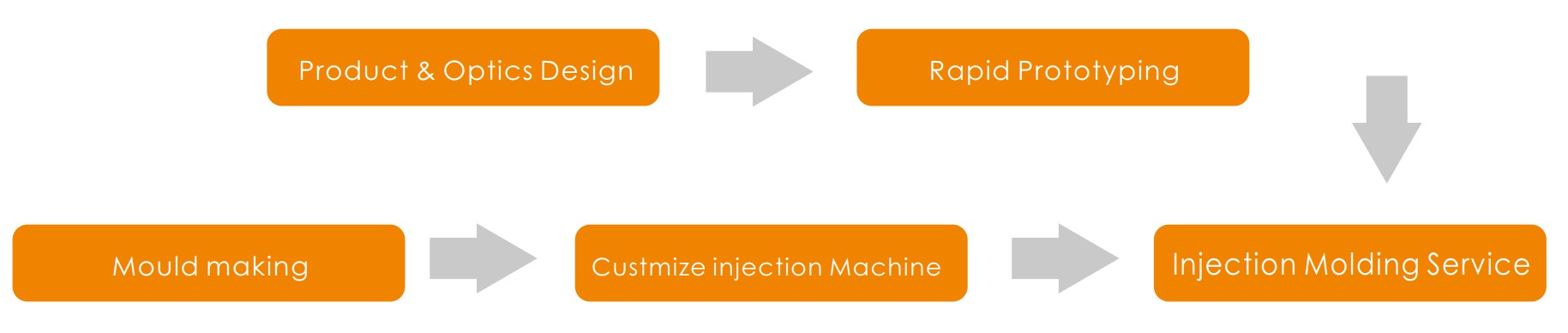 We have more than 10 sets injection machine from 170ton to 680ton,provide project feasibility report ,material selection and part injection as well as small quantity lighting assembly services.